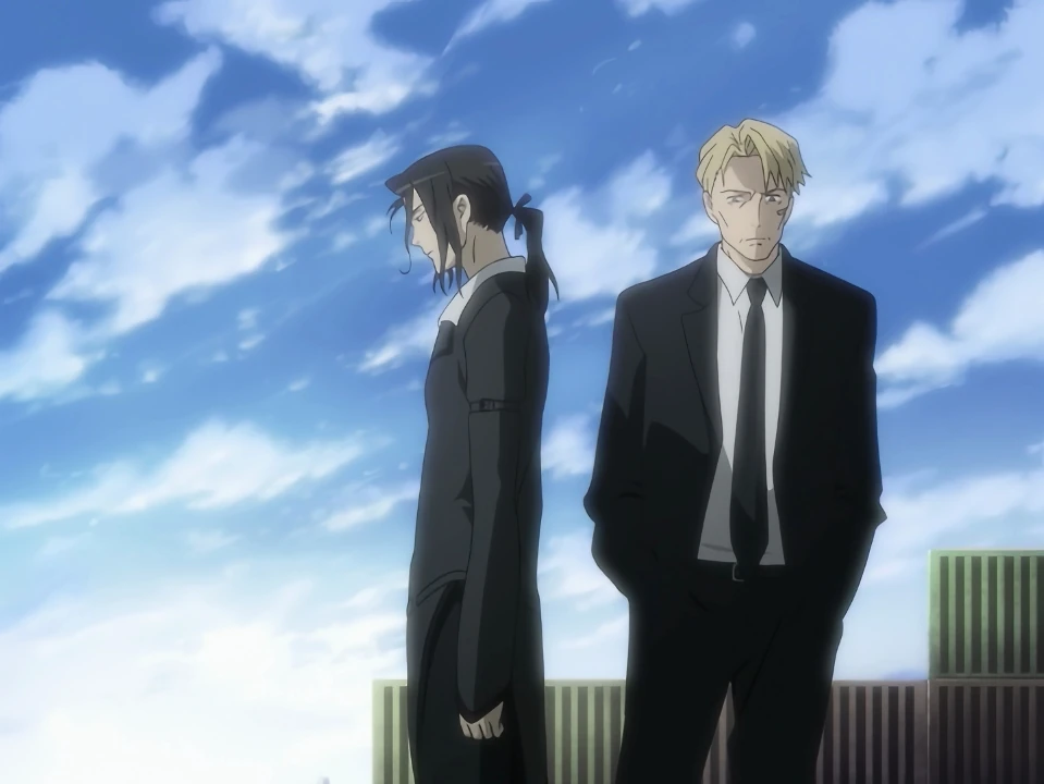 As dawn approaches and the Red Shield guy is packing up the bodies, Kai expresses his disappointment to Riku, telling how powerless he is. David asks Hagi if he obeys Saya, but then gets a phone-call from Julia saying that George has been taken away by the US military.
