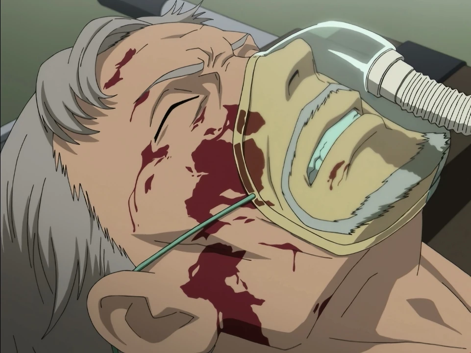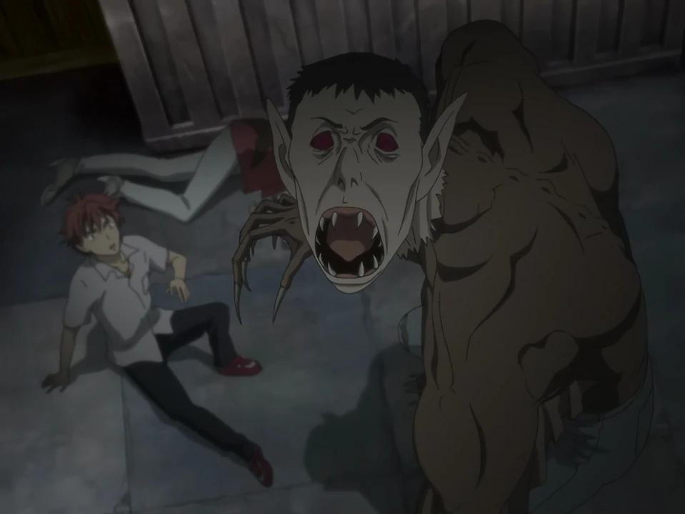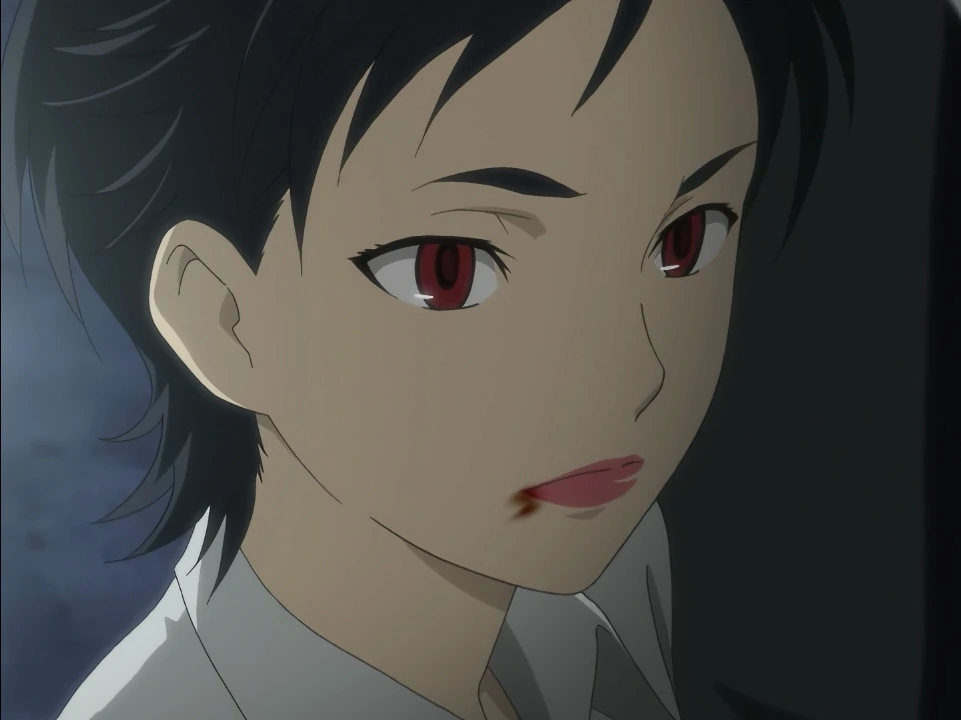 Meanwhile, Kai has followed Reimi to a warehouse. He pulls out the gun, getting ready to enter, but he hears a scream from within. Inside, he finds Forest sucking Reimi dry. Forest sees him and lunges after dropping Reimi. Kai’s gunfire alerts Saya, who gets out of Mao’s car and starts running, eventually encountering the cellist in an alley. She asks for his help in saving Kai because she doesn’t want anyone else to get hurt. The cellist, who introduces himself as Hagi, slits his mangled hand again, and this time Saya willingly drinks from it. Riku, who was chasing Saya, enters the alley in time to see her with blood on her lips. Hagi then takes Saya towards the warehouse, jumping from roof to roof. They arrive there just in time to save Kai, who is out of bullets. The cellist tackles the vampire and holds him off while Saya cuts herself to get the blood flowing into her sword. When Forest charges her, she swings and cuts off his arm, causing him to crystallize. With the battle over, Saya breaks down crying.
