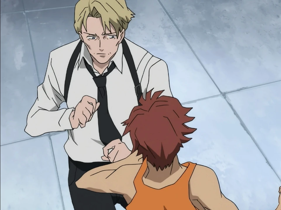 Saya overhears a frustrated Kai telling Riku that Saya is different from them. After David reports back to his superiors, Julia shows him some documents that indicate a DNA sequencer has been delivered to a research facility, and the two suspect something is occurring there. Kai walks by while the two are talking and bursts in. David takes him to the roof and shows him how weak he is by dodging his attacks and beating him up a bit in front of Saya and Riku. As Saya is leaving with David to save George, Kai pleas to her that they should go together, but Saya says that Kai shouldn’t go because if anything happened, he’d be a hindrance. Completely defeated by her words, Kai has no choice but to stay.