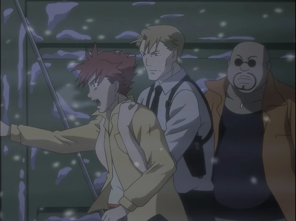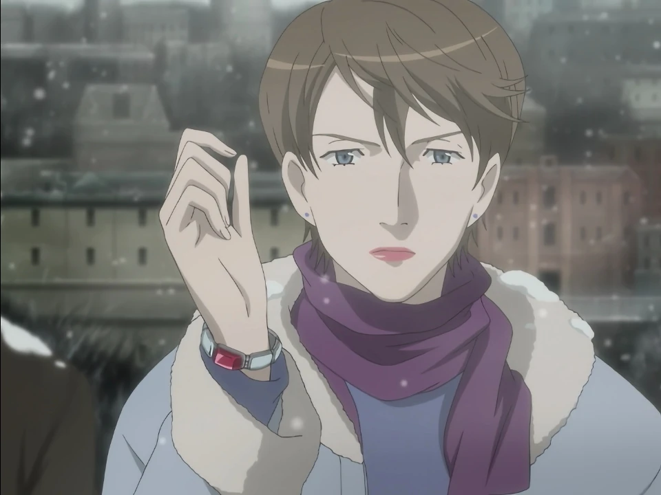 While getting on the train, Riku and Hagi help an elderly woman wearing a mysterious blue ring. The first leg of the ride is relatively uneventful except for Kai making a ruckus about room assignments. In the dining car some days later, Lewis shows off a box of candy he got from a pair of kids going to Paris who wanted to be introduced to Julia and Elizabeth. Riku spots the elderly lady he had helped earlier, and Hagi gives up his seat for her. She tells him that she’s going to Moscow to see her great-grandchildren. Across the aisle, Elizabeth tells the Red Shield members about her experience in Afghanistan where her entire force was annihilated by the Chiropterans. As Elizabeth leaves, she is being watched by the elderly lady. That night, Elizabeth’s naked body – with a neck bite mark, is dumped off the train.