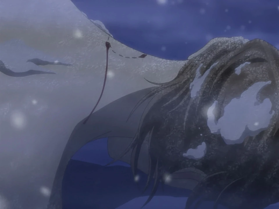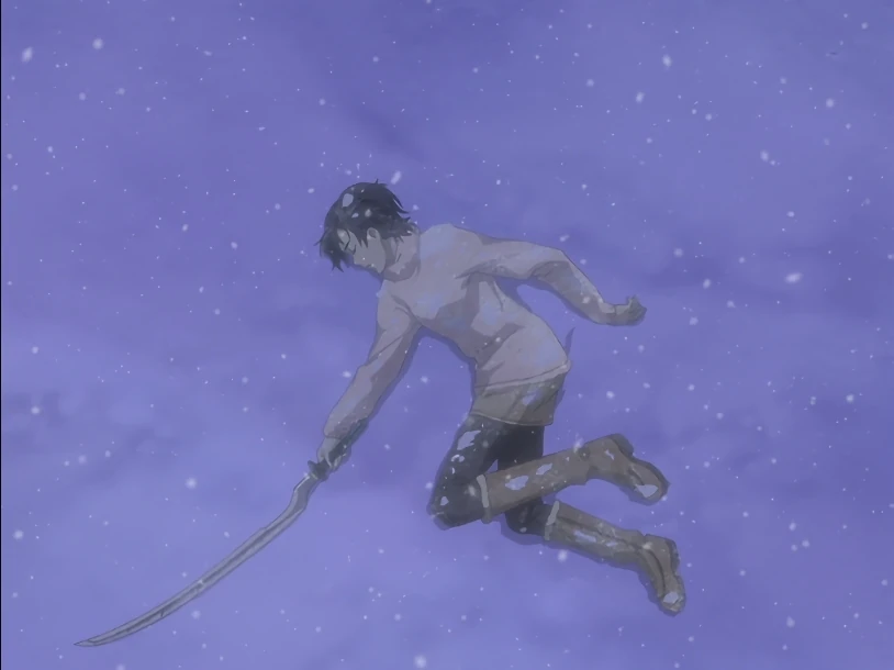 Saya is getting a blood transfusion when she asks Julia about her past and what happened in Vietnam 30 years ago. But Julia tells Saya that she has to remember for herself. Meanwhile, Hagi is teaching Riku to play the cello when both of them and Saya detect Chiropterans; it seems that the kids going to Paris were injected with something. Saya and Hagi quickly take up arms and start to fight. Hagi chases one of them on top of the train while the rest of the group runs for the rear. He goes for a lunge, but instead gets impaled by the Chiropteran’s feet. Fortunately, Saya is under him and pierces through the roof with her sword, killing that one. Lewis gets the stored armaments and starts blasting the remaining one. They manage to shoot it until it falls off and gets crushed by the train or so they think until it grabs Riku’s leg and pulls him off. Saya cuts off the Chiropteran’s arm while Hagi leaps to grab Riku. Unfortunately, all three of them are no longer on the train. Kai wants to jump after them, but David holds him back. They hear Julia’s yell from the other side of the car, and turn around to see Elizabeth (who is now sporting the blue ring) jumping off. Lewis gets the train to stop and the rest of the group initiates a search. Somewhere in a field of snow, Saya lays unconscious.