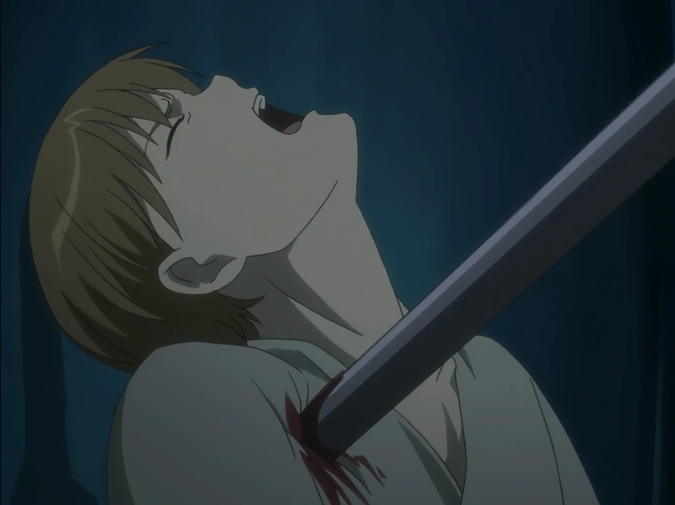 Kai pushes Riku out of the way of one of the Schiff, but then is unable to stop them from advancing towards them. Saya has to come in and block the attack so that Riku and Kai can get away. However, when he sees Karman trying to flank Saya, Riku turns back and grabs onto Karman’s weapon. Karman throws Riku against a wall and stabs him in the shoulder. He then charges Saya, but Hagi stops him. Kai rushes over to Riku, and Saya and Hagi try to protect them. Everyone notices that Riku can heal like a Chevalier. One of the Shifu tries to attack again, but gets cut in half by Saya. Moses decides that they should leave for now because Saya is different from before and now has two Chevalier.