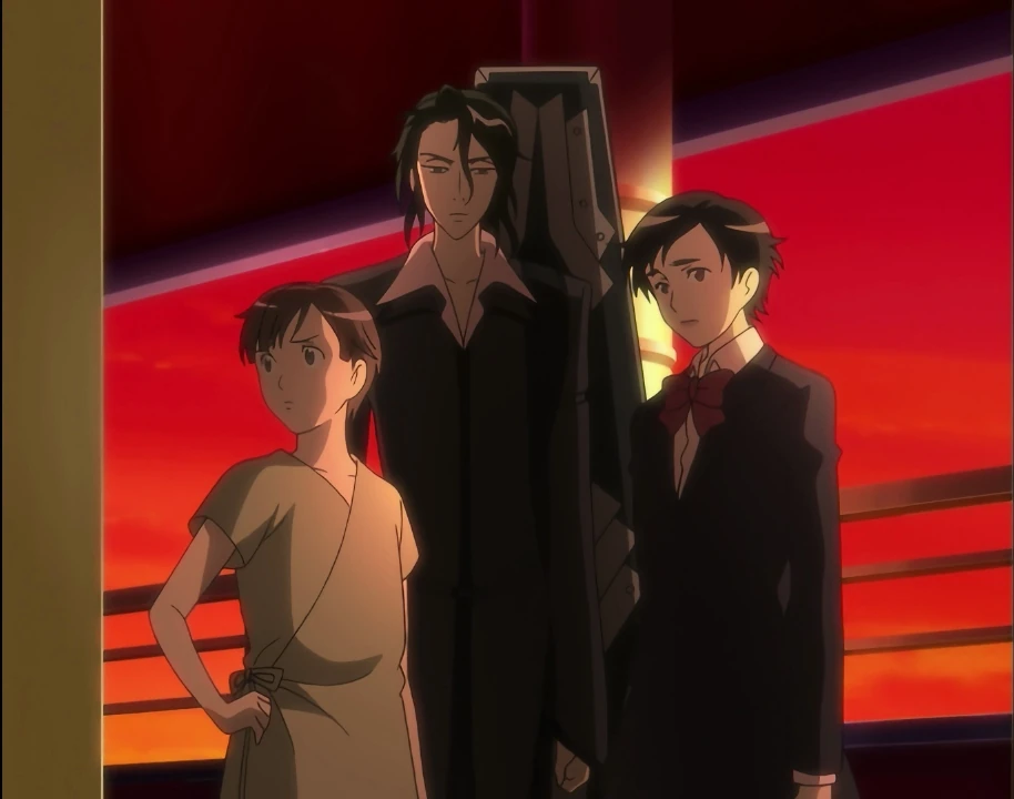 While watching the sunset, Saya confides to Hagi that she doesn’t know how to look or speak in front of Riku. Hagi gets on one knee and tells her that she had the same face back during that time when he became a chevalier. He wants her to be herself, and promises to be with her wherever she goes; Riku is the same. At that time, Kai is still being protective of Riku by not allowing him to walk and not telling him what happened back at the zoo. When he runs into Saya and Hagi, Riku’s face lights up. He proposes to Saya that they explore the ship and Saya goes along after some encouragement from Kai. After the others walk off, the lonely Kai remembers David telling him that Riku is different from before and now needs Saya. Kai was distraught about Riku’s time stopping, but David had said that it’s Kai’s duty to catch Riku now that George isn’t around anymore.
