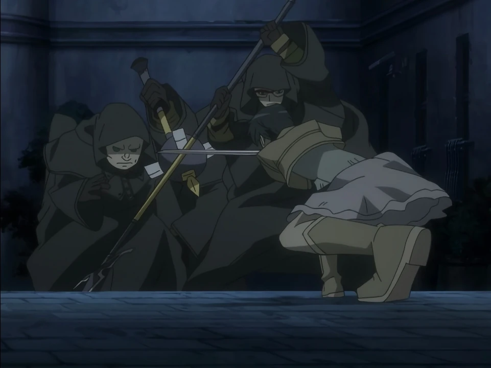Kai finds Saya in the courtyard of the apartment practicing with her sword. Her intent is to continue fighting the Schiff because they won’t hesitate to kill her. It’s her responsibility to defeat Diva and the Chiropterans since she was the one who set Diva free. Kai argues that even man has its share of good and bad people. If all Chiropterans were bad, then Saya and Riku would also count as enemies of man. Saya counters by saying that if the Chiropteran weren’t around, then their father wouldn’t have died. Kai asks Saya if she’s just going to ignore the other side and massacre them all. Saya thinks that Kai has changed, but he disagrees. During all of this, Riku and Hagi have been watching from the rooftop. When Riku asks what he’d do in this situation, Hagi says that he’d only watch. Riku admires how strong Hagi is and wishes that he himself could do something for Saya. Hagi says that there is something that only Riku can do: stay by Saya’s side forever. Riku says that Hagi can also do this, and Hagi starts to respond, but doesn’t finish his sentence.