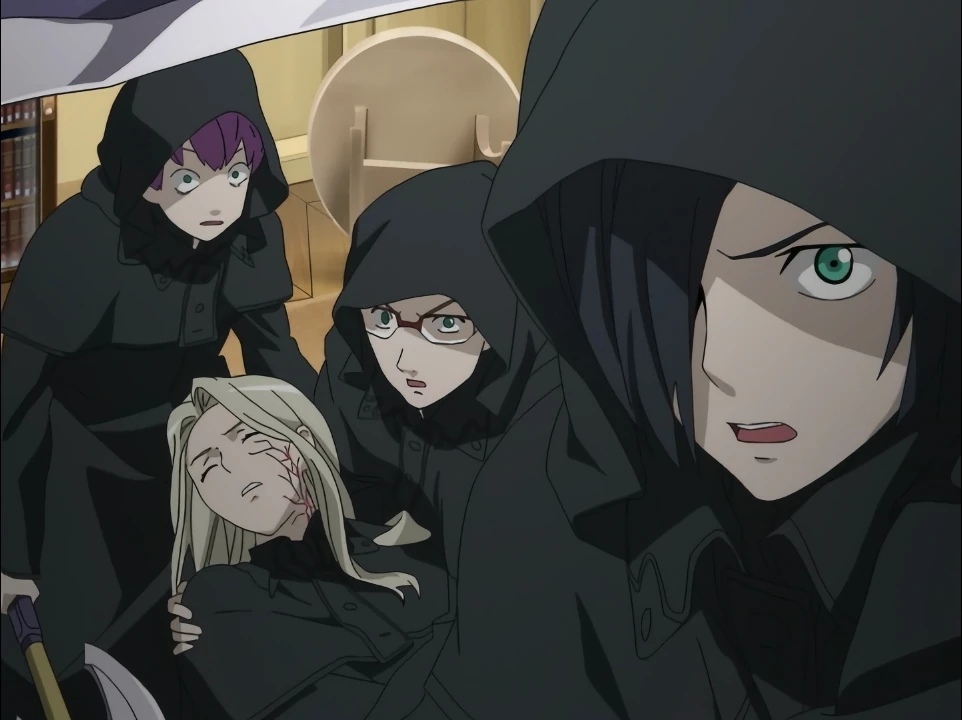 Meanwhile, at the Schiff hideout, Irene’s condition is getting worse from the Thorn. She tells the others that her time with Kai was fun. Irene starts wondering aloud if they can become someone’s memories. She finally understands that if they don’t live on in someone’s memories, they will just disappear. And Kai had recognized her as a person, not a tool. To save her though, the Schiff decide that they must get Saya’s blood.
