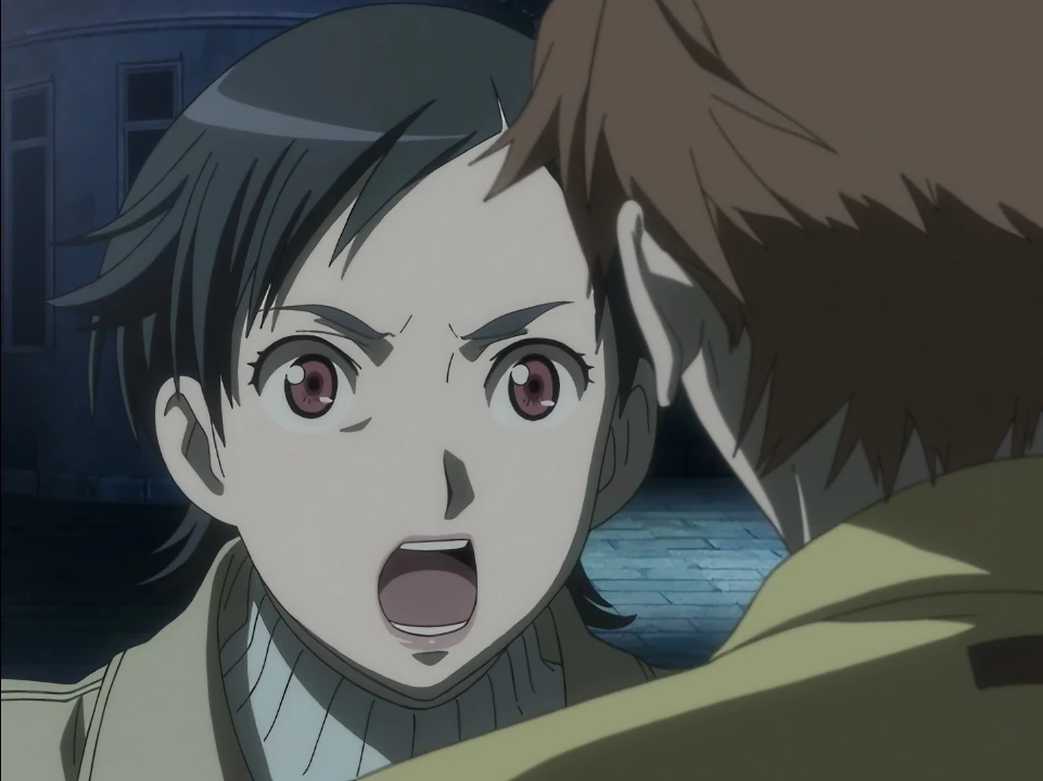 Suddenly, one of the walls in the room explodes – the Schiff are here. Saya, backed up by Hagi, draws them outside and away from everyone else. Kai readies his gun and tells Mao that this is why they wanted her to leave. Riku does his part by pushing Lulu out of the room into the courtyard below. Irene also appears, but in her weak state, she gets shot in the shoulder by David. Kai steps between David’s gun and her, and then runs over to her when she falls down. When the Schiff hear Kai yelling for Irene to open her eyes, they rush to the apartment and push Kai out of the way. Saya chases them inside, but Kai stops everyone and begs Saya to give Irene some of her blood to save her.