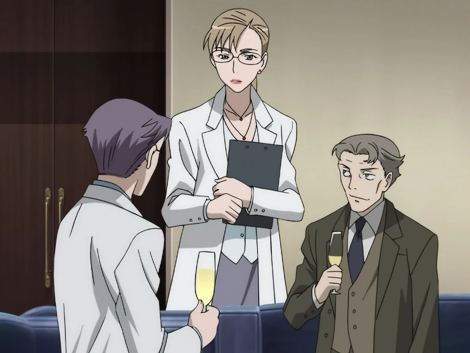 Back in the living room, Okamura explains that the real reason his room got blown up was because he posted the photographs he took of the attempted assassination of Amshel onto the Internet. The people troubled by such photographs were most likely the pair sitting the background behind Amshel, the people who part of the plot. David decides that they should try to dig up information on the person who ordered the assassination. Elsewhere, Van Argiano is celebrating his promotion to CEO with Collins. Julia comes in wanting to speak with Collins, but he just leaves all the work to her. Amshel also enters the room, requesting an urgent examination for Diva. To Collin’s surprise, Amshel asks Julia to be the doctor in charge for Diva. When Collins protests, Amshel reminds him that his original work was on the research and development of the Corpse Corps. He tells Collins to work hard and then leads Julia away. Meanwhile, Mao has cooked up a rather burnt breakfast for Saya. To Mao’s relief though, Saya still finds it delicious. Mao’s actually been in contact with back home and shows Saya a photograph of her father’s new baby, Mao’s new little sister. Saya finds the baby cute, and Mao says that Saya can see the baby when she returns to Okinawa. Saya thinks for a bit, and then says that she felt that Mao would be a scarier person. Mao reminds her that she’s the one fighting monsters with her sword, which causes Saya to laugh. She starts to get nostalgic about Okinawa, wondering about the heat and how Kaori is doing. Mao says that Saya can return to Okinawa once all this ends and meet Kaori again. She also invites Saya to go out shopping once they go back. With a hint of sadness in her voice, Saya agrees to do that once this is all over.