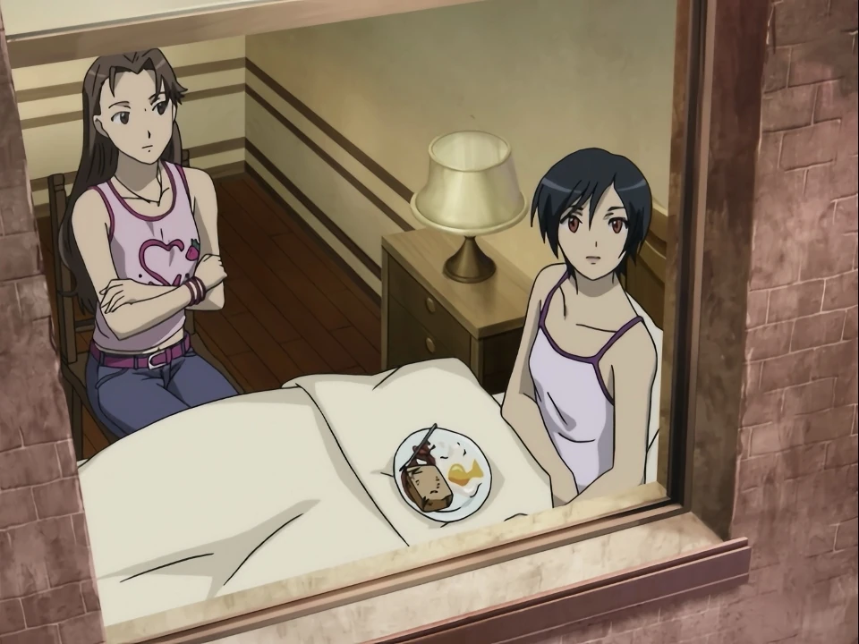 At the apartment, Kai learns from David that Diva will be singing at an Air Force base. Okamura thinks it’s a trap, but they’re of course going anyway. Mao brings them some coffee and David gets the first taste of it; he calls it a very unique coffee. Mao also brings a cup to Saya’s room and hears Saya telling Hagi not to say anything about something that’s coming soon. Since Mao interrupts them after having overheard the conversation, Saya tells her about the 30 year sleep cycle. Saya doesn’t know the reason, but she can only live as a normal person for two or three years before having to sleep for the 30 years. When Mao wants to know why she doesn’t want to tell everyone that the time is coming, Saya can only apologize. Mao asks her if everything they talked about earlier about going back to Okinawa and meeting her new little sister was all a lie. Saya is about to say sorry again, but Mao slaps her first.