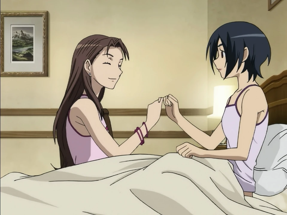 Mao is at the airport buying a first-class airplane ticket back to Japan for next week. She then calls up Okamura right as he’s getting back to their apartment and asks him to come to the airport to get her. Okamura dumps the ramen cups he bought outside his door and exits the building, just as it explodes. One of the now-burning ramen cups tumbles down to his feet. Later, at David’s apartment, Mao explains that there was a gas leak that caused the explosion. She’s surprised to see that Lewis and David are soaking their feet in ice water, but that’s actually because the air conditioner is broken. After David reveals that Diva will be giving a performance at the Metropolitan Opera House in September, Mao asks what Saya is up to. According to Kai, she’s actually still sleeping and hasn’t been feeling well recently. Mao makes a snide comment about how this is an all male household and then goes to see Saya. She finds Saya awake already, with Hagi by her side. Mao kicks Hagi out and then opens up the drapes to let some light into the room.