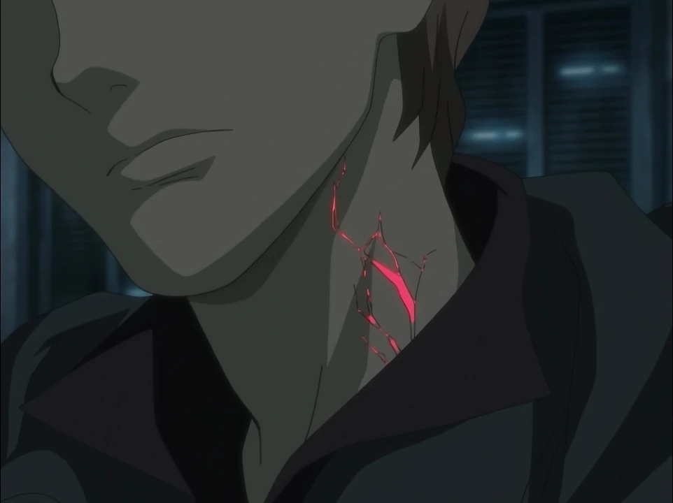 Lulu starts sucking on one of the blood packets that she considers delicious and remembers to tell Moses that she now has a place that she wants to go: Okinawa. She describes the place happily and says that once everything is over, Kai will be returning there. That’s why when that time comes, she wants the Shifu to go together with him. Karman cuts her off and tells her that it won’t happen. Even if they obtain their dream, they would only get hurt. After thinking for a bit, Lulu announces that recently she’s been thinking that they won’t die and the Thorn won’t develop for them. Karman angrily rushes over, grabs her, and reminds her of all their friends who have died of the Thorn. In doing so, his hood has come off, exposing his neck where it is apparent that the Thorn has started to grow. Without saying anything else, Karman covers himself up and leaves. Lulu chases after him, but she doesn’t see which way he went and goes in the wrong direction. Outside their building, a familiar face has appeared – James.
