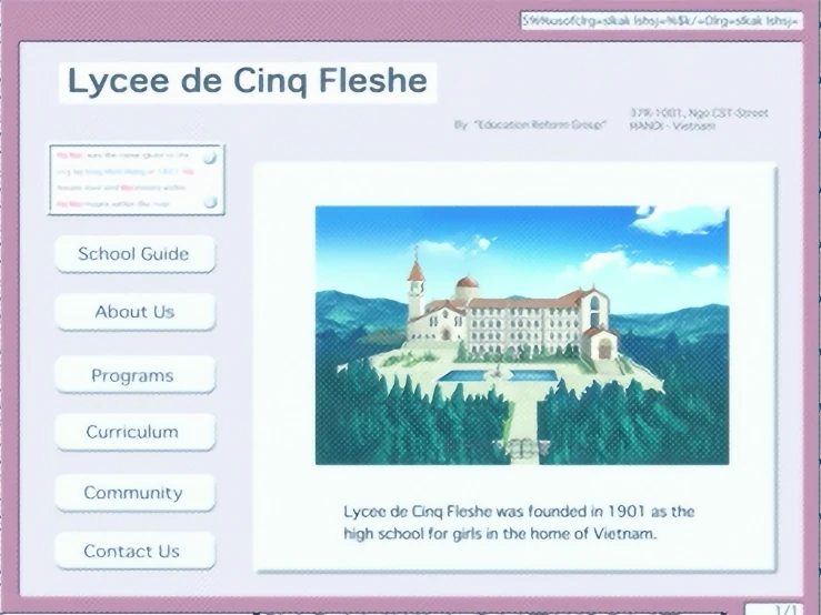 It is a prestigious all-girls high school in Vietnam run by the Cinq Flèches group. The school is chaired by Karl Fei-Ong and the matron of the hostel is Ms. Lee. After George's death, Saya decides to kill chiropterans and her first mission takes her to this place in pursuit of project Delta 67 ~ in other words to find out the whereabouts of Diva. In order to infiltrate the school, David creates a false identity for Saya, claiming that she is a Japanese exchange student. After being admitted, Hagi follows her, disguised as a gardener. Here, she meets the phantom. During the grand ball, she meets Solomon, who offers Saya to dance with him after her beauty catches his attention.