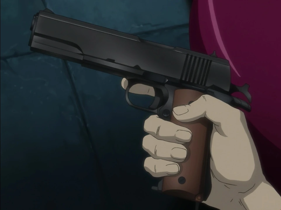 The M1911A1 pistol belongs to George Miyagusuku who has been using it throughout his wartime as he is an ex-US military. It is likely he kept the weapon after leaving the military. He is shown to be drawing the weapon out during flashback scenes of Saya awakening. He was about to fire but could not bring himself to do this to the innocent looking girl in front of him.