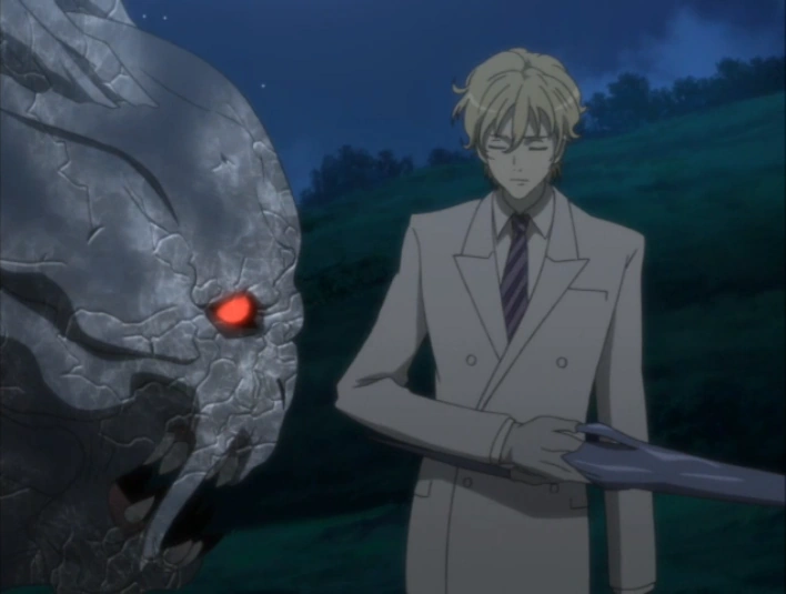 Transformation: He fully transforms when rescuing Saya and Kai and fighting with Hagi. He mostly uses his partial transformation of his right arm into that of a sword. In the anime, this is his personal ability. In the manga, it's suggested to be an ability of any Chevalier, as he teaches this ability to Riku.